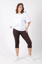 Лосины прилегающего силуэта из хлопкового трикотажного полотна. По линии талии широкий пояс. Благодаря эластану в составе модель имеет хорошую посадку по фигуре. По низу левой детали принт. Перевод: "Мой путь".