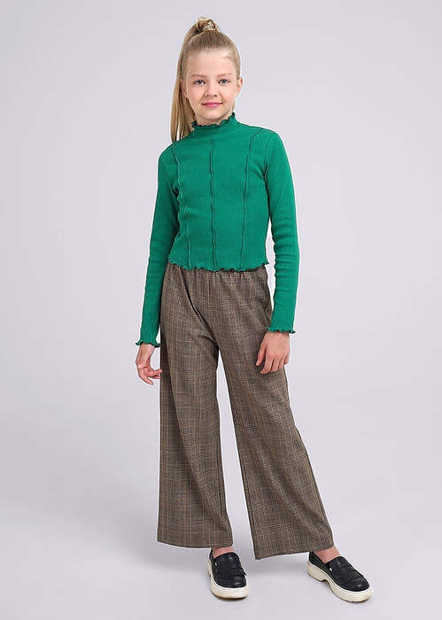 Тренд сезона! Укороченный лонгслив из эластичного кашкорсе с рельефными швами и фигурной окантовкой по краям. Практичная альтернатива блузкам и футболкам. Такая модель идеально впишется в повседневный или школьный гардероб.