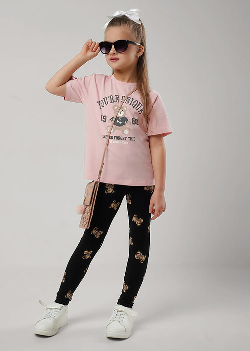 Стильные леггинсы отлично подойдут для летних прогулок и активного отдыха. Модель выполнена из хлопка с эластаном в яркую набивку. Сочетай леггинсы с футболками из новой коллекции и получишь много новых ярких образов на каждый день!