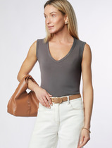 Топ для сна и отдыха из кашкорсе на широкой бретели. Снизу жаккардовая нашивка.