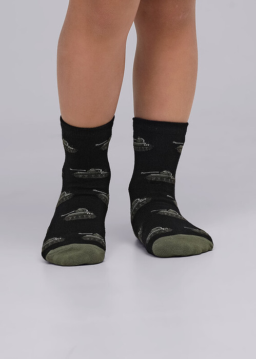 Носки для мальчика с выделенными мыском и пяткой и рисунком танки