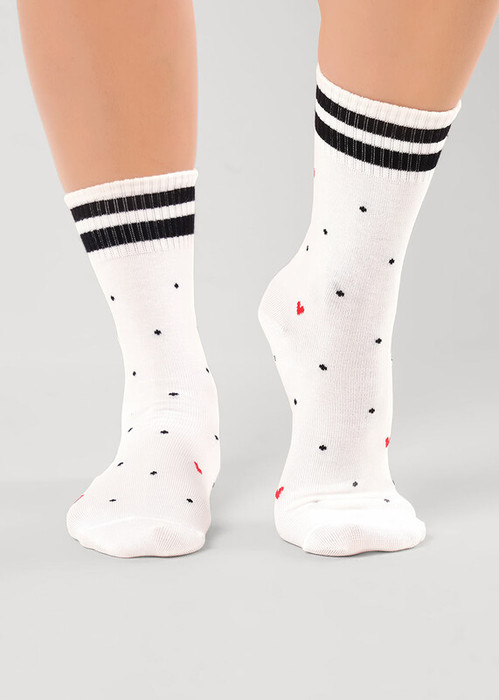 женские носки с рисунком сердечки и черными точками