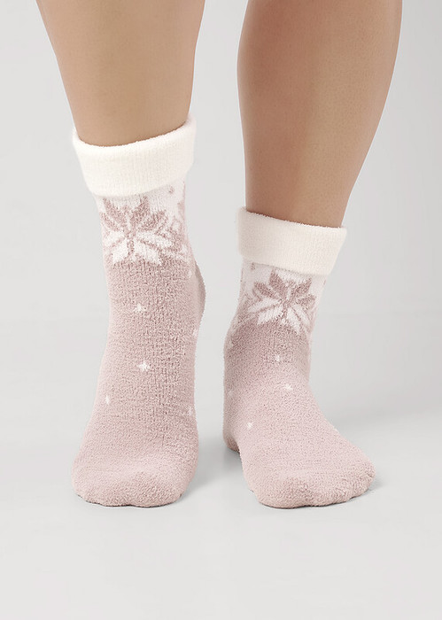 новогодние женские носки-сапожки из мягкой пряжи ""травка"" с орнаментом