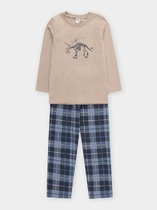 Комплект хлопковой пижамы из джемпера и брюк. Джемпер свободного кроя дополнен эластичной горловиной и манжетами. Брюки среднего объема, эластичный пояс обеспечит комфорт и идеальную посадку. По низу брюк эластичные манжеты.