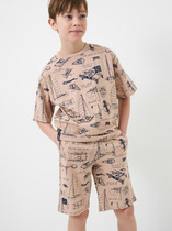 Комплект хлопковой пижамы из футболки и брюк. Футболка свободного кроя дополнена эластичной горловиной и стильным принтом- набивкой. Брюки свободного покроя, эластичный пояс обеспечит комфорт и идеальную посадку.