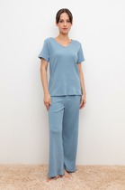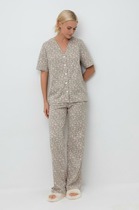 Набор одежды для дома и отдыха из трикотажного полотна. Футболка прямого кроя, горловина с обтачкой. Короткий целькроенный рукав. Спереди накладной карман с принтом вспенка. Шорты с поясом на резинке и киперной лентой. Боковые карманы с отрезным бочком.