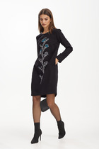 Платье из трикотажного полотна интерлок жаккард, прямого силуэта длиной ниже колена. По горловине стойка, спереди на молниии. Длинный втачной рукав. По спинке средний шов, внизу разрез.