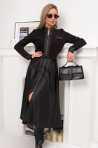Платье из трикотажного полотна пике, без рукавов А-образного силуэта. Округлая горловина. По плечу хлястики.Спереди рельефы,боковые карманы в швах.На детали спинки средний шов с молнией, рельефы. По горловине и пройме внутренняя обтачка. Боковые разрезы.
