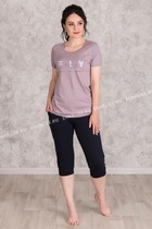 Платье для дома прямого кроя из хлопкового трикотажного полотна. Округлая горловина с обтачкой из кашкорсе. Короткий втачной рукав, нашивка. Спереди принт. Сзади по спинке внутренняя кокета, застил.