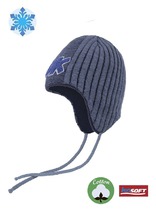 Детский шлем с флисом и дополнительным утеплением из синтепона по всей голове. Декорировано пампоном и стильной нашивкой.