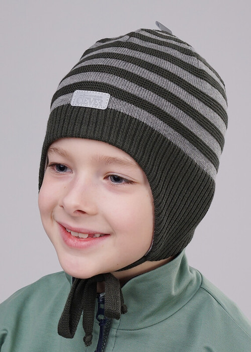 Детская шапка с удлиненными ушами на завязках, декорирована светоотражающей нашивкой в центральной части и светоотражающей "петлёй" в верхней части изделия. Внутри хлопковый подклад (95% хлопок, 5 % эластан), а в области ушей дополнительное утепление- ветрозащитная мембрана.