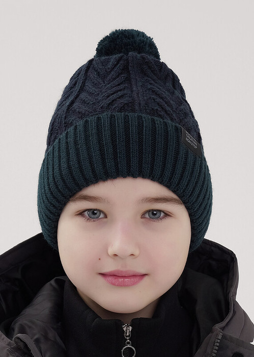 Clever Шапка детская для мальчика CLE 454456ап флис т.зелёный/т.синий