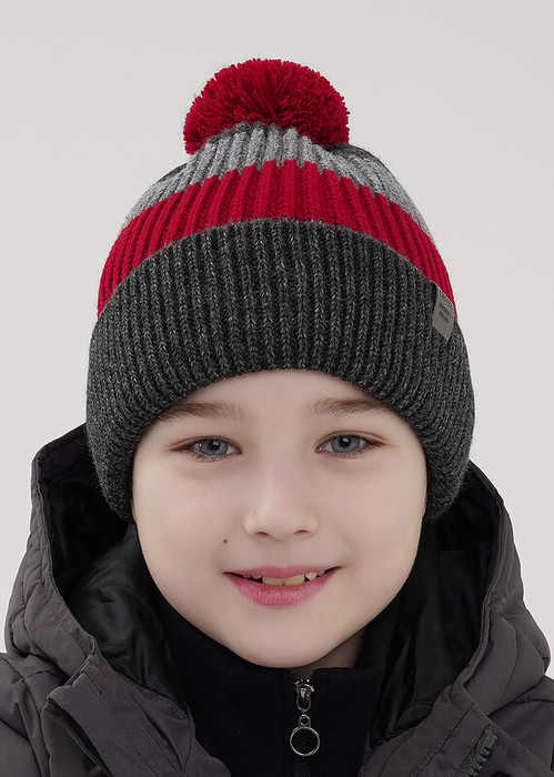 Совместные покупки Тюмень Детские аксессуары Шапки — Clever Шапка детская для мальчика CLE 454475ап флис меланж т.серый/красный