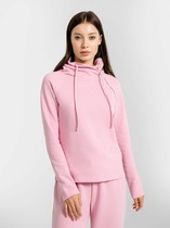 Куртка спортивная из трикотажного полотна футер,на молнии. По горловине капюшон на подкладе со шнуром. Длинный рукав со спущенной линией плеча, нашивка.По низу рукава и изделия манжеты. Спереди карман кенгуру, принт.По пройме и шву рукава открытый срез.