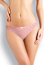 Трусы бикини женские из эластичного хлопкового полотна. По переду рез с кружевной вставкой. Обработка краев по талии и ноге окантовочная резинка.