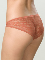 Бикини комфортной посадки из сетки. По ножкам -кружевная тесьма, по поясу - резинка с фестоном. По переду - симметричные кружевные вставки и небольшой атласный бант.