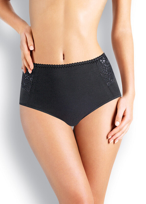 Трусы макси утяжка женские из плотного эластичного хлопкового полотна. По переду отделка кружевом и двойной слой основного полотна. Обработка краев по талии - ажурной резинкой с фестоном, по ноге - окантовкой.
