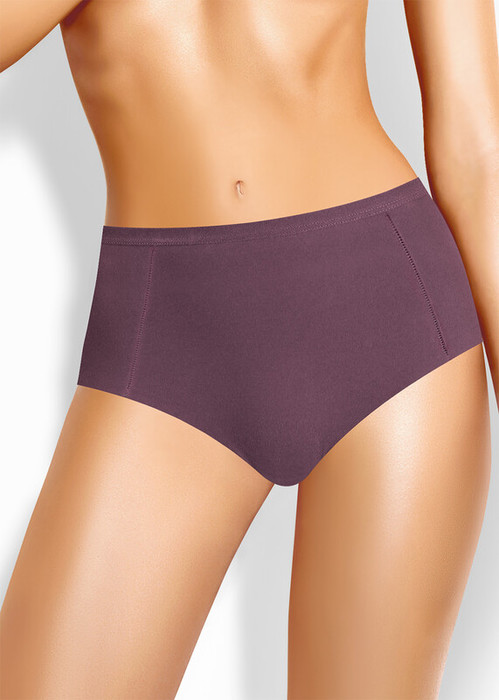 Трусы макси на высокой посадке из интерлока, состав 80% хлопок, 20% эластан. Боковые швы смещены в сторону переда, по ножке бесшовная обработка, полотно не распускается за счет особенностей плетения, по талии обработка жаккардовой резинкой.
