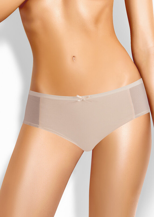 Трусы шорты комфортной посадки из трикотажного полотна с добавлением эластана. По бокам вставки из сетки на тело. Завершает дизайн бантик.