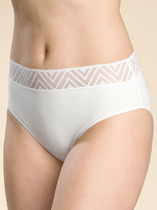 Трусы слипы-макси женские из эластичного вискозного полотна -кашкорсе лапша. Обработка краев по талии - жаккардовая резинка, по ноге - узкое кружево.