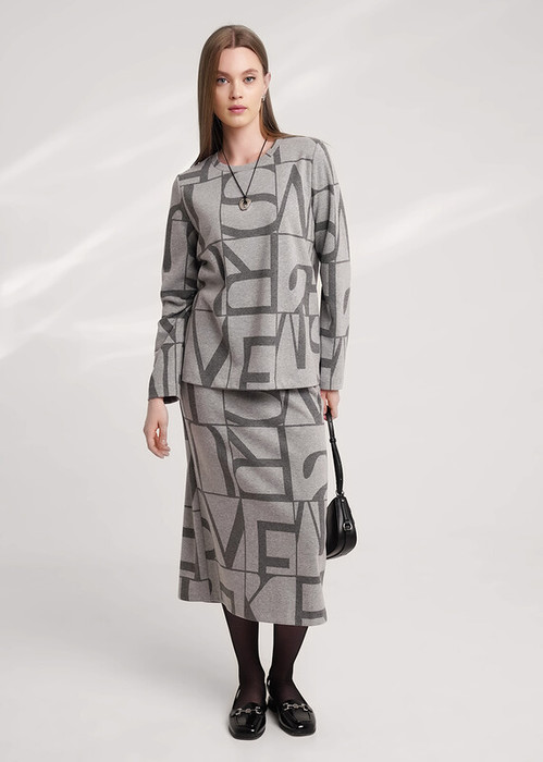 Юбка миди из поливискозного трикотажного полотна джерси жаккард. По талии внутренняя резинка. Сзади средний шов со шлицей. По низу изделия потайной стежок.