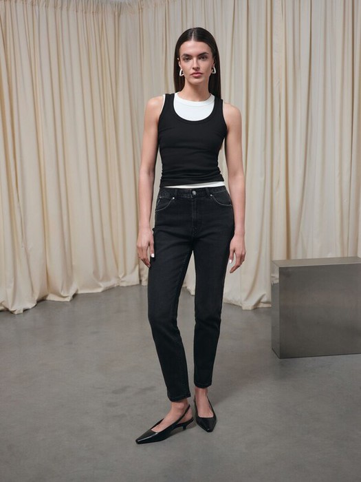 Совместные покупки Тюмень Женская одежда Джинсы — Conte Актуальная коллекция CONTE CON-790 Чёрные джинсы slim с эффектом потёртост