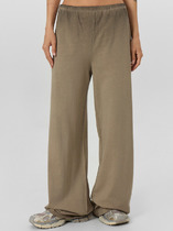 Брюки женские из набивного текстильного материала свободного покроя с боковыми карманами. Низ изделия обработан манжетами с резинкой внутри. Верхний срез изделия обработан притачным поясом с резинкой по бокам и узкими завязками вставленными по-переду в люверсы.