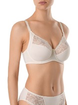 Белье Femina - воплощение женственности. Серия создана из нежного эластичного кружева с растительными мотивами, дополненного мягким сетчатым полотном с деликатным блеском. В роли элегантного украшения выступают атласные тесьмы на каркасах, бантик и аппликация «Сonte».