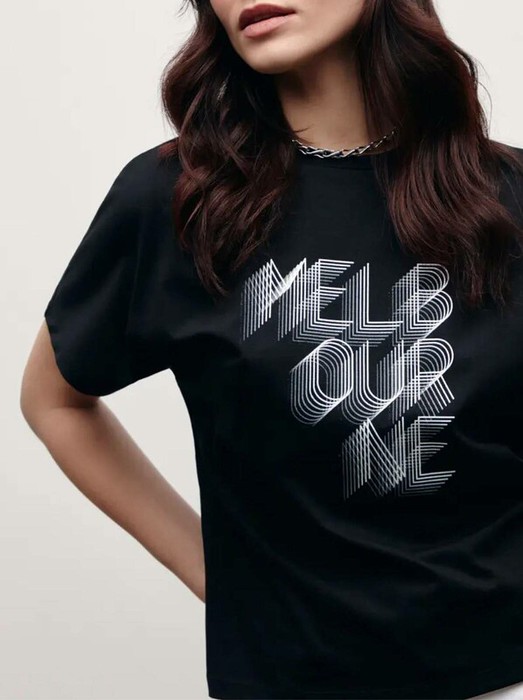 Базовая футболка прямого кроя «Melbourne» из мягкого хлопка сочетает в себе минимализм и оригинальные тенденции уличной моды. · прямой силуэт· круглый вырез горловины с планкой· короткие рукава· объемный печатный рисунок «Melbourne»· мягкий 100% хлопок· устойчивый цвет и сохранение формы при соблюдении рекомендаций по уходу· стильная база для повседневных образов.