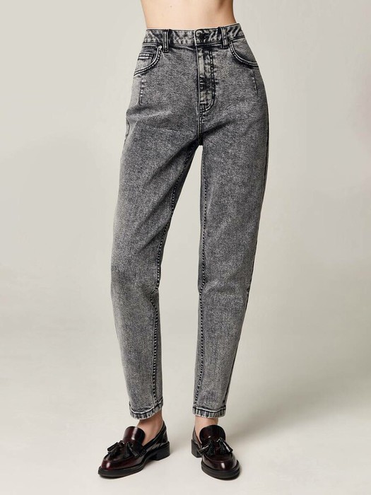 Джинсы mom с высокой посадкой подойдут девушкам с разными типами фигуры: благодаря высокой посадке, акцентным вытачкам по карманам, прилегающему крою в области бедер и слегка зауженным штанинам модель визуально моделирует силуэт.