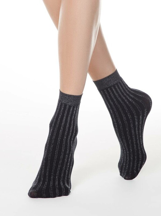 Совместные покупки Тюмень Женская одежда Носки — CONTE ELEGANT Полиамидные CONTE FANTASY Носки в полоску с люрексом 19С-25СП nero