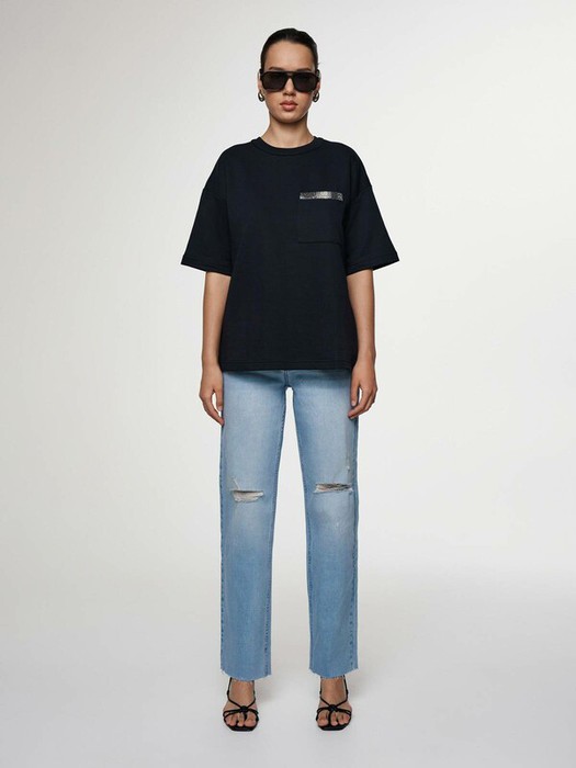 Джинсы straight подойдут девушкам с разными типами фигуры: благодаря высокой посадке, прилеганию в области бедер и прямому крою штанин модель отлично подчеркивает силуэт. Стильные эффекты разрушения, рваные участки в области колен и необработанный край помогут создать актуальные повседневные образы в непринужденном стиле.