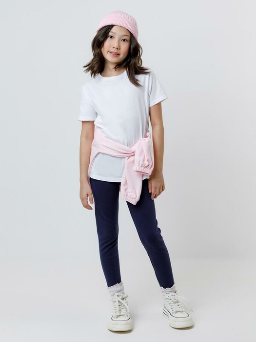Длинные лосины для девочки из однотонного эластичного трикотажа. Цельнокроеный пояс с плоской резинкой внутри.