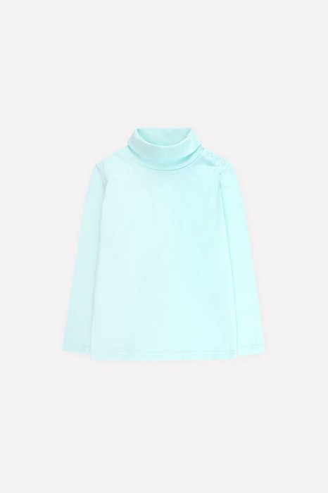 Однотонная детская водолазка из хлопкового трикотажа интерлок пенье. Длинные рукава. Высокая горловина с отворотом, в области плеча предусмотрена застежка на кнопки-ободок.