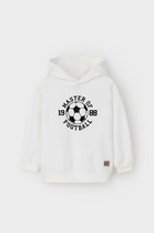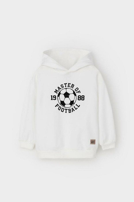 Трикотажное худи с капюшоном для мальчика. Изготовлено из высококачественного петельчатого футера. Манжеты и пояс из эластичного трикотажа в рубчик.