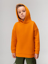 Трикотажное худи с капюшоном из однотонного петельчатого футера с принтом. Спереди удобный накладной карман-кенгуру. Манжеты и пояс из эластичного трикотажа в рубчик.