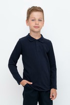 Джемпер поло с длинными рукавами для мальчика из трикотажного полотна пике. Вязаный воротник. Удобная застежка спереди. По бокам разрезы, обработанные киперной лентой.