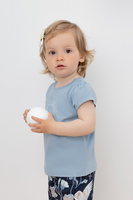 Футболка для девочки из высококачественного трикотажного полотна. Для удобства редусмотрена застежка на 2 кнопки. Оригинальный принт выполнен из стойких текстильных гипоаллергенных красителей.