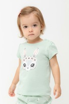Футболка для девочки из высококачественного трикотажного полотна. Для удобства предусмотрена застежка на 2 кнопки в размерах 92 и 98. Оригинальный принт выполнен из стойких текстильных гипоаллергенных красителей.