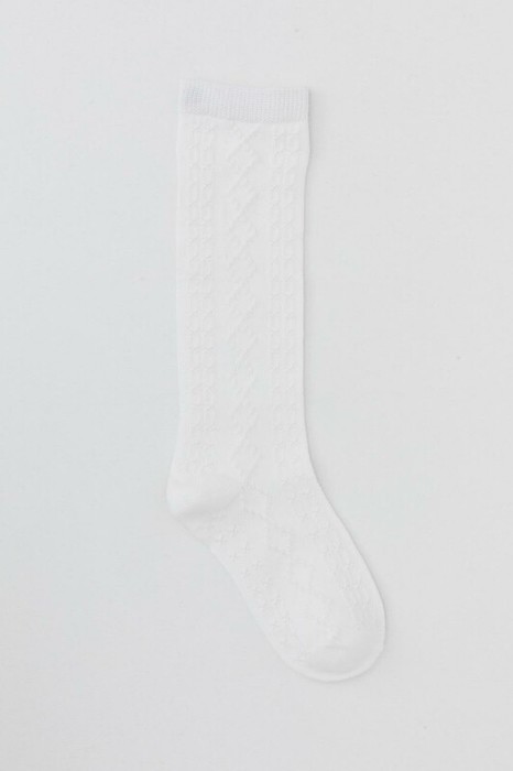 Гольфы для девочки, связаны ажурным геометрическим узором.