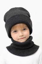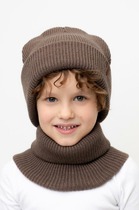 Комплект для девочки: шапка и снуд из хлопкового трикотажа в рубчик с добавлением эластана, окрашенного стойкими гипоаллергенными текстильными красителями. Изделия хорошо тянутся, после многократных стирок сохраняют цвет и форму.