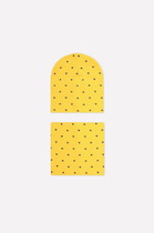 Комплект для мальчика: шапка и снуд из хлопкового трикотажа в рубчик с добавлением эластана, окрашенного стойкими гипоаллергенными текстильными красителями. Изделия хорошо тянутся, после многократных стирок сохраняют цвет и форму.