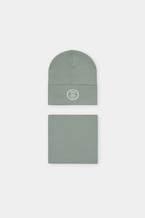 Комплект для девочки: шапка и снуд из хлопкового трикотажа в рубчик с добавлением эластана, окрашенного стойкими гипоаллергенными текстильными красителями. Изделия хорошо тянутся, после многократных стирок сохраняют цвет и форму.