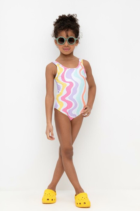 Слитный купальник на лямках для девочки. Оригинальная набивка выполнен из стойких гипоаллергенных красителей.