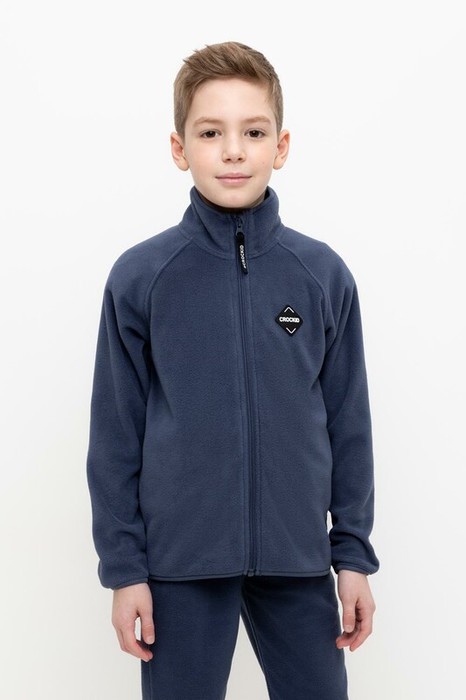 Флисовая куртка для мальчика. У изделия удлинённая спинка, высокий воротник, предусмотрена защита шеи и подбородка. Рукава-реглан и низ изделия обработаны эластичным кантом для лучшего прилегания к телу, по бокам два кармана. Куртка сохраняет цвет и форму после многократных стирок.
