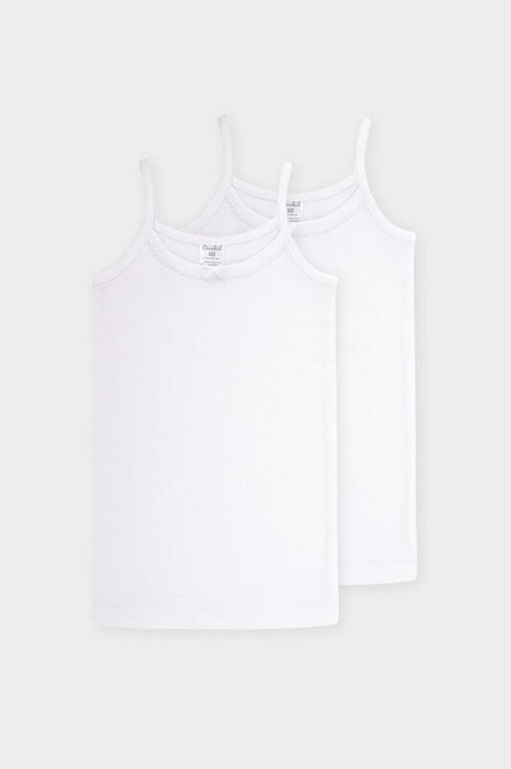 Трикотажные майки на бретелях в комплекте 2 шт из натурального хлопка. Горловина украшена декоративной мережкой. На полочке бантик. Изделие сохраняет цвет и форму после многократных стирок. Все трикотажные полотна производятся в соответствии с нормами Швейцарского сертификата ЭкоТекс.