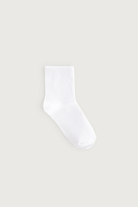 Короткие белые носки без рисунка. Эластичная резинка по верхнему краю.