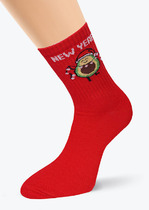 Тёплые махровые носки с формованной пяткой и эластичной резинкой по краю. Украшены рисунком. Отлично подойдут для создания праздничных образов или как дополнение к подарку на Новый год и Рождество. Изделие сохраняет форму и стойкий цвет после многочисленных стирок.