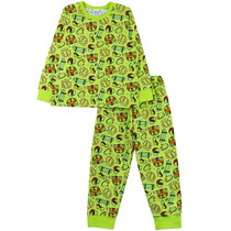Трикотажная пижама из натурального хлопка. Джемпер с длинными рукавами с эластичными манжетами. У брюк эластичный пояс на резинке. Оригинальная набивка выполнена из стойких, гипоаллергенных текстильных красителей. Пижама сохраняет цвет и форму после многократных стирок. Все трикотажные полотна производятся в соответствии с нормами Швейцарского сертификата ЭкоТекс.
