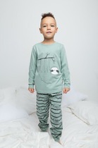Трикотажная пижама в рубчик из натурального хлопка. Джемпер с длинными втачными рукавами и лосины с эластичной резинкой в поясе. Оригинальная набивка выполнена из стойких текстильных гипоаллергенных красителей. Изделие сохраняет цвет и форму после многократных стирок. Все трикотажные полотна производятся в соответствии с нормами швейцарского сертификата ЭкоТекс.